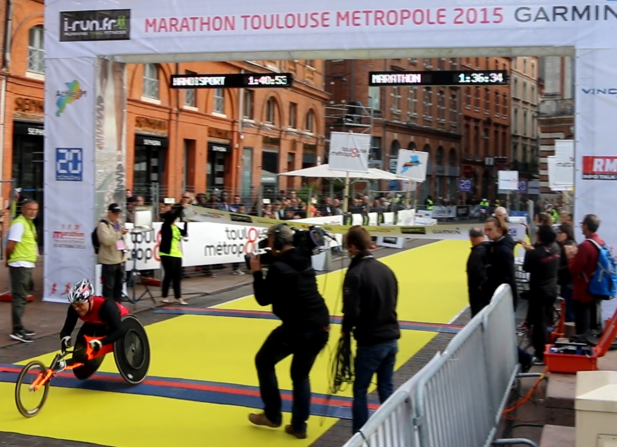 Denis LEMEUNIER, vainqueur handisports pour la seconde fois de la 9e édition du Marathon Toulouse Métropole
